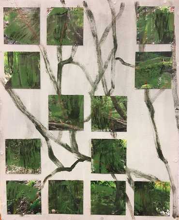 Waldstücke (2016), 54 x 43, Mixed Media (Fotografie, Tempera, Spachtel)
